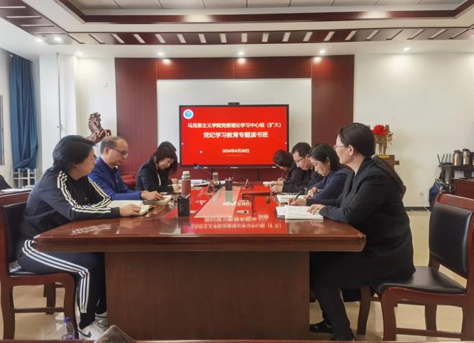 4月26日下午,马克思主义学院在知行楼A624会议室举行党委理论学习中心组(扩大)党纪学习教育专题读书班。学院全体党员参会,院党委书记田宗会主持会议。
