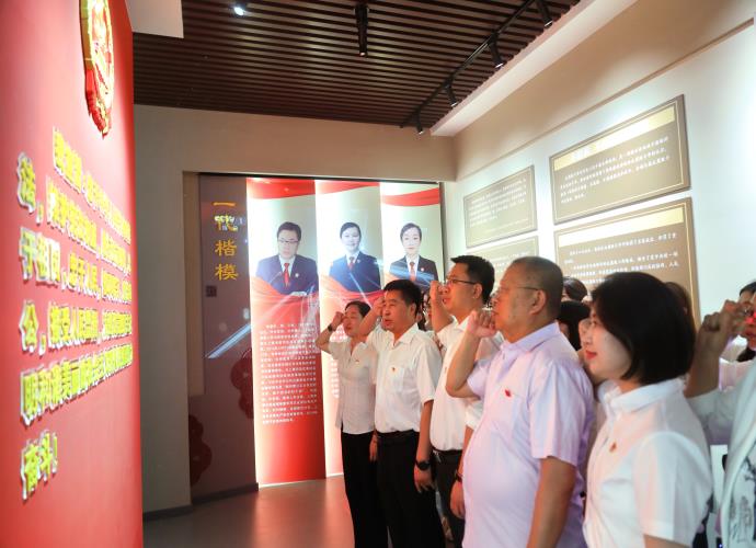 在讲解员的带领下,全体党员参观了“正本清源”、“规言矩步”、“警钟长鸣”和“一代楷模”四个展厅,厅内展示的大量图片、视频、文字和实物资料使全体党员深刻地认识到了廉洁自律的重要性。广大党员仔细聆听廉政故事,细心感受廉洁文化,坚定了初心,淬炼了灵魂。全体党员在学院党委书记田宗会的领誓下面向宪法进行庄严宣誓。