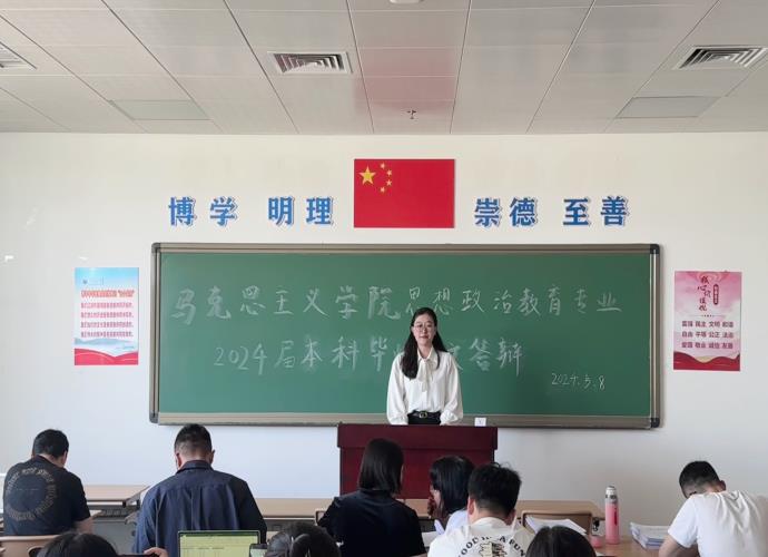 毕业论文答辩是本科人才培养阶段必不可少的教学环节,是应届毕业生在专业学习基础上的综合素质训练,根据学校2024届本科毕业论文(设计)相关工作进度要求,马克思主义学院于5月8日下午在西拉木伦校区蒙医药楼开展了2024届思想政治教育专业毕业生毕业论文答辩工作。思想政治教育专业105名应届毕业生分为三个答辩小组参加答辩,每组5个答辩委员,由答辩主席主持。学院十分重视答辩工作,院长金鑫、副院长舒心心到场巡视。