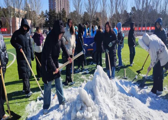 “春寒料峭,乍暖还寒”。在工作人员的引导下,同学们领好工具到达指定区域进行清雪。在清除冰雪的过程中,他们冲在前,干在先,边铲边扫,配合默契,干劲十足。即使双手通红也没停止铲雪的步伐,充分发扬不怕苦不怕累的精神。经过大家的共同努力,所在区域积雪被清理干净,同学们用热情驱走了早春里的阵阵寒意。