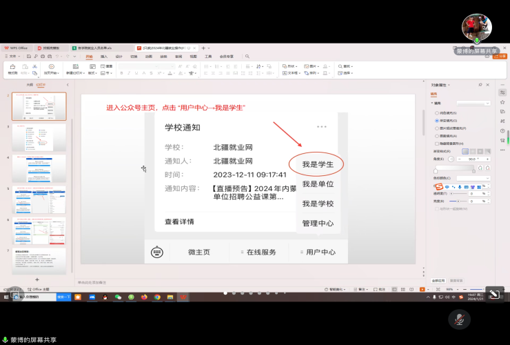 会上,就业指导处蒙博老师为2024届毕业生详细讲解北疆就业系统使用方法及毕业去向填写工作相关事项,并对当前毕业生就业工作中遇到的实际问题进行详细解答。