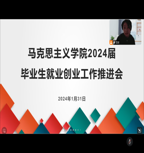 为深入贯彻落实习近平总书记关于就业工作的重要指示精神,切实推进毕业生高质量就业,全力推进我院2024届毕业生就业创业工作。1月31日,马克思主义学院通过线上腾讯会议召开2024届毕业生就业创业工作推进会。马克思主义学院党委书记田宗会、党委副书记山丹、就业指导处蒙博老师、学院2024届全体毕业生及毕业班班主任、辅导员参会。会议由学工办主任范欣主持。