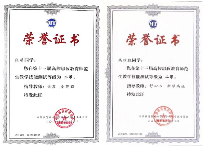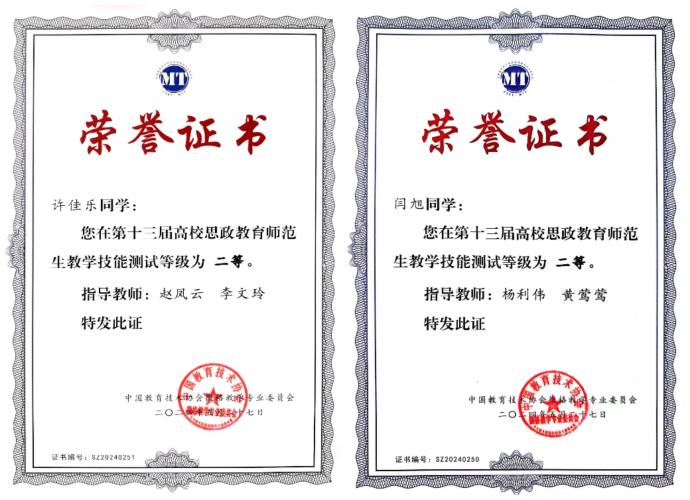 比赛包括教学片段设计测试和现场教学技能测试两个部分,我校参赛的六名选手全部获奖,2022级学科教学(思政)专业研究生秦鹏、2021级思想政治教育专业本科生张颖荣获一等奖,2022级学科教学(思政)专业研究生高雅觐、2021级思想政治教育专业本科生张萌、许佳乐、闫旭荣获二等奖,创下我校在此项活动中历史最好成绩。