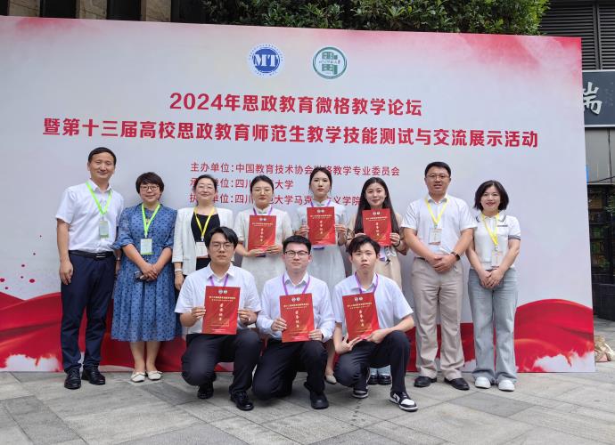 5月24日至27日,由中国教育技术协会微格教学专业委员会主办、四川师范大学承办的2024年思政教育微格教学论坛暨第十三届高校思政教育师范生教学技能测试与交流展示活动在四川成都举行。本届比赛有来自华中师范大学、东北师范大学、陕西师范大学、华南师范大学、四川师范大学等89所院校的547名学生和218名指导教师参加。