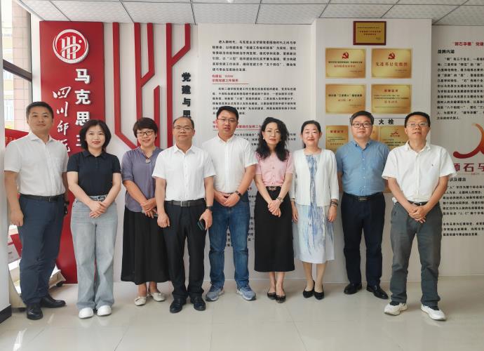 会后,调研组一行参观了四川师范大学马克思主义学院的办公环境、学院发展成就展和“一屏一廊一室一堂”党员活动阵地。