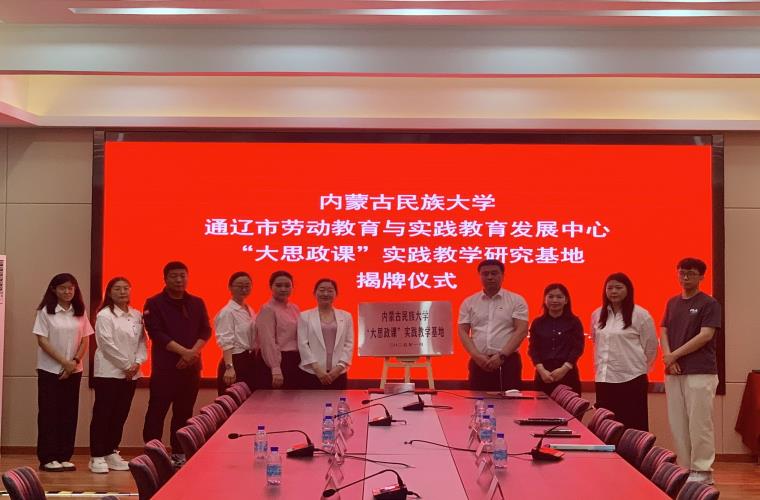 为深入贯彻习近平总书记关于思政课建设的重要论述,落实“大思政课”重要指示精神,充分挖掘社会资源在思政教育中的积极作用,6月18日,内蒙古民族大学与通辽市劳动教育与实践教育发展中心携手,成功举行了“大思政课”实践教学研究基地签约挂牌仪式 。通辽市劳动教育与实践教育发展中心主任布日额及发展中心部分教师,马克思主义学院党委副书记山丹、副院长舒心心、实践教学管理中心主任斯琴高娃、习近平新时代中国特色社会主义思想概论教研室主任王晓慧及学院部分教师共同参加了本次活动。