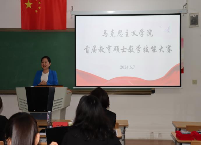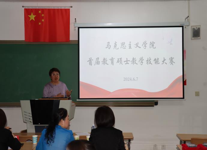 为检验教育硕士专业学位研究生的校内教学实践成果,提升我院研究生教师职业技能和综合素质,培养高素质专业化优秀教师后备人才,提高我院学科教学(思政)专业研究生的说课讲课水平,夯实教育理论知识,锤炼教育教学实践能力,6月7日下午2点30分,马克思主义学院在西拉木伦校区蒙医药楼204教室成功举办了“首届教育硕士学科教学(思政)专业研究生教学技能大赛”。院长金鑫出席了本次比赛。大赛特别邀请了通辽市实验中学高中政治学科首席教师王晶担任评委,同时学院副院长舒心心、张丽红教授、于红梅教授、思政课程实践教学管理中心主任斯琴高娃副教授也担任了评委。活动吸引了众多学科教学(思政)专业的同学前来观摩学习。