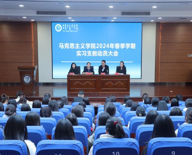 为推进学院学生实习工作合理有序开展,加强实习教学管理,引导学生做好实习前期各项准备工作,3月12日下午,马克思主义学院在图书馆小报告厅召开2024年春季学期实习支教动员大会。学院院长金鑫、学院党委副书记山丹、学院副院长舒心心出席本次大会,会议由思政课程实践管理中心主任斯琴高娃主持,实习指导教师代表、21级思想政治教育专业本科生以及22级学科教学(思政)研究生参加会议。