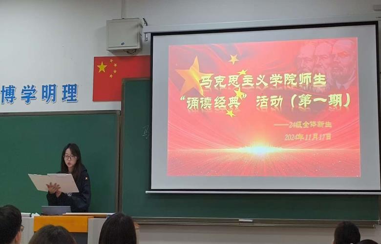 为了进一步发挥我院思想政治理论课实践教学的特色和优势,积极引导学生研读马克思主义经典著作,加深对马克思主义基本原理的理解,提高学生研习马克思主义经典著作的能力,感悟马克思主义的理论魅力,11月17日晚,马克思主义学院在实验楼202举办了第一期马克思主义经典诵读活动。