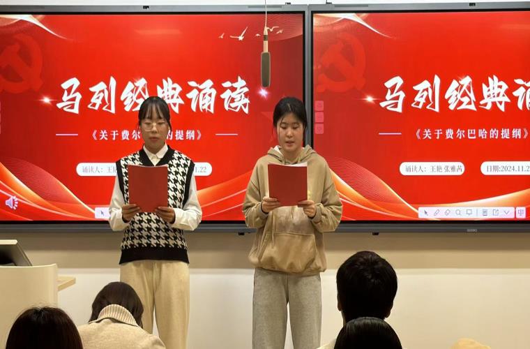 此次活动基于《马克思主义基本原理》“诵读经典”实践教学实施方案以及活动具体安排开展,面向全体24级思想政治教育专业学生,通过多样化的形式和内容开展,充分调动了学生诵读经典的积极性。本次活动中,同学们通过个人诵读、集体诵读等多种方式,诵读了包括《在纪念马克思诞辰200周年上的讲话》《关于费尔巴哈的提纲》《庆祝改革开放40周年的讲话》《习近平:在庆祝中华人民共和国成立70周年大会上的讲话》《青年在选择职业时的思考》在内的多篇马克思主义理论经典著作。通过诵读经典活动同学们加强了对于“读原著学原文悟原理”的深刻理解。