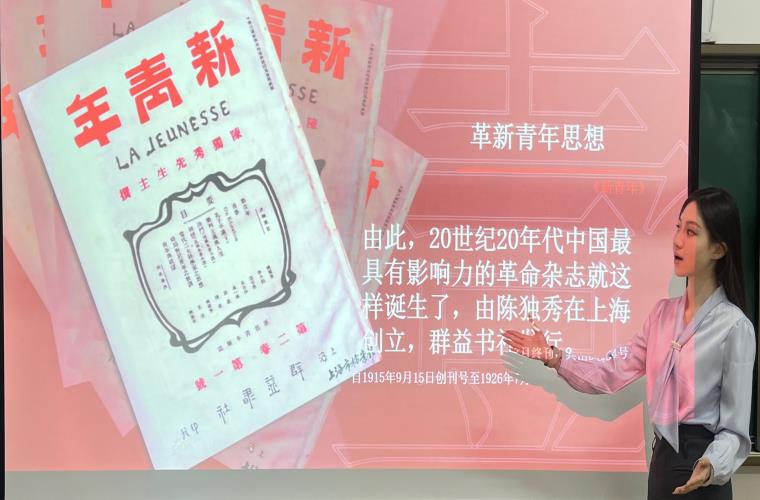 申浩煜从六个方面向大家详细介绍了《新青年》,从创刊的历史背景、发展阶段到与之相关的重要事件、重要人物、经典文章。以青年革命者“若盛世将倾,深渊在侧,我辈当万死以赴”,执笔为剑、救亡图存,无畏牺牲、找寻救国真理的责任感和奋斗精神,激励同学们坚持追求真理、追求进步。新时代青年一代要发扬青年人永久奋斗的伟大传统,肩负起时代使命,练就过硬本领、锤炼品德修养,勇做走在时代前列的奋进者、开拓者、奉献者,以真才实学服务人民,以创新创造贡献国家。