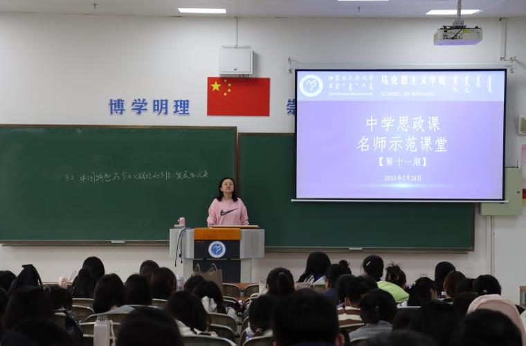 为更好地发挥名优教师的引领和示范作用,帮助学生强化实习素养,保障实习工作顺利开展,2月28日与3月1日,马克思主义学院于西拉木伦校区实验楼206室开展第十一期“中学名师示范课堂”活动,特邀通辽市第一中学教师王圆、通辽市实验中学教师丛前主讲,马克思主义学院思政课程实践教学管理中心主任斯琴高娃主持。2022级思想政治教育专业1班、2班共108名学生参加本次活动。