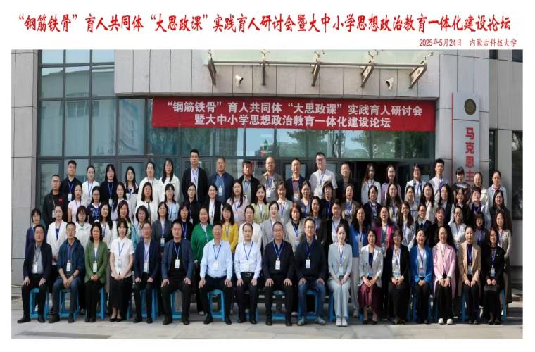 5月23日至25日,马克思主义学院副院长舒心心、学院教师斯琴高娃、王晓慧、代宏丽、梁焕然一行五人应邀参加内蒙古科技大学举办的“钢筋铁骨”育人共同体“大思政课”实践育人研讨会暨大中小学思想政治教育一体化建设论坛。本次论坛由内蒙古科技大学联合北京科技大学等共同体共同发起,协同内蒙古自治区大中小学一体化建设单位联合举办,来自全国各地30余所高等院校、大中小学的专家学者以及阿拉善盟教体局、昆区教育局、达茂旗教育局的同志齐聚一堂,围绕“大思政课”实践育人和大中小学思政教育一体化建设主题展开研讨。