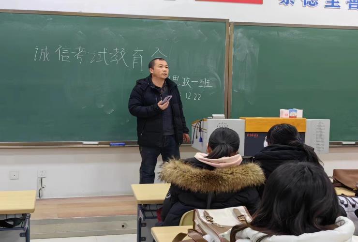 人无信不立,业无信不兴,国无信不强。为引导同学们树立诚信考试观念,营造良好的考风考纪,推动学院学风建设。近日,马克思主义学院各班级组织开展诚信考试教育主题班会。马克思主义学院领导、各班班主任深入班级强调了诚信考试的重要意义。
