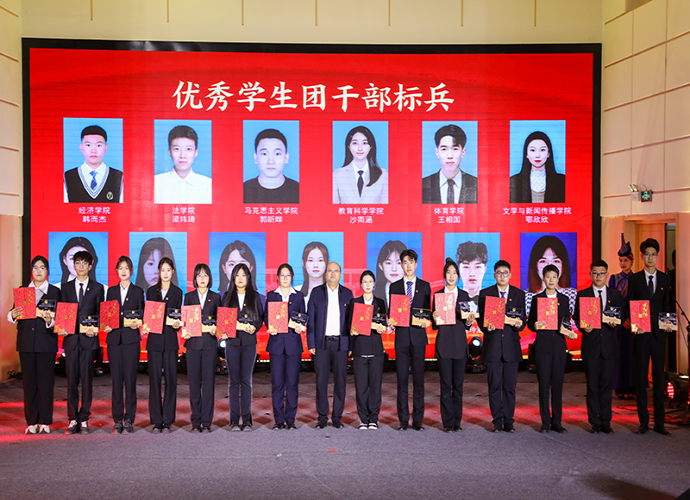 颁奖典礼上,学校对2023年度在共青团工作中表现优异的集体和个人进行了表彰,马克思主义学院在此次表彰中荣获佳绩。其中,2022 级思想政治教育 2 班团支部荣获“红旗团支部”称号,李鑫等9名同学荣获优秀共青团员称号,杨佳明荣获优秀共青团员标兵称号,王伟杰等6名同学荣获优秀共青团干部称号,郭昕晔荣获优秀学生团干部标兵称号,付欣等47名同学荣获优秀青年志愿者称号,弓晓冉荣获考证达人称号,张宇莹荣获传承达人称号。