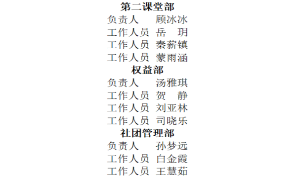展望明朝创新路,不忘初心传薪火。本次换届招新工作的圆满完成,不仅为同学们提供了一个展示自己才华和能力的机会,更调动了学生骨干的工作热情,为今后学生会有序开展工作奠定了良好基础。新的征程已经开启,第八届团总支学生分会将满怀高涨的热情、秉持踏实的态度砥砺前行,共创辉煌。
