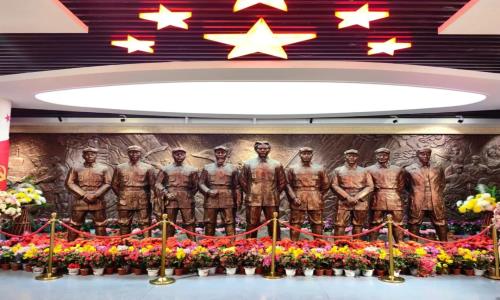 该照片拍摄于2024年7月27日甘南藏族自治州迭部县红军长征纪念馆。遵义会议后,中央红军四渡赤水、巧渡金沙江,路续北上。强渡大渡河,飞寄泸定桥,翻越夹金山,与红四方面军胜利会师。此雕塑展现了中央红军领导人在红军长征过程中的意气风发、运筹帷幄。