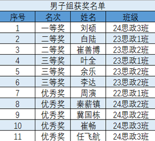 体育强则中国强,国运兴则体育兴。本次比赛不仅丰富了学生的课余生活,更提升了他们的身体素质,充分彰显了青年学生的蓬勃朝气与竞技激情。马克思主义学院将继续弘扬中华体育精神,帮助学生更好认识到体育锻炼的重要性,以实际行动为体育强国建设、全面建设社会主义现代化国家贡献青春力量。