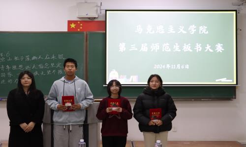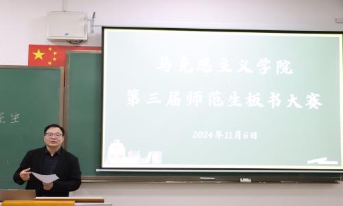 为全面贯彻落实习近平总书记关于做好推广普及国家通用语言文字工作的重要指示精神,提高师范生板书书写能力及设计水平,加强师范类专业人才培养质量,11月6日,马克思主义学院于西拉木伦校区实验楼202室成功举办内蒙古民族大学第三届师范生板书大赛院级初赛。 文学与新闻传播学院语文教育教研室主任周坤、马克思主义学院思政课程实践教学管理中心主任斯琴高娃、习近平新时代中国特色社会主义思想概论教研室主任王晓慧担任此次大赛的评委。