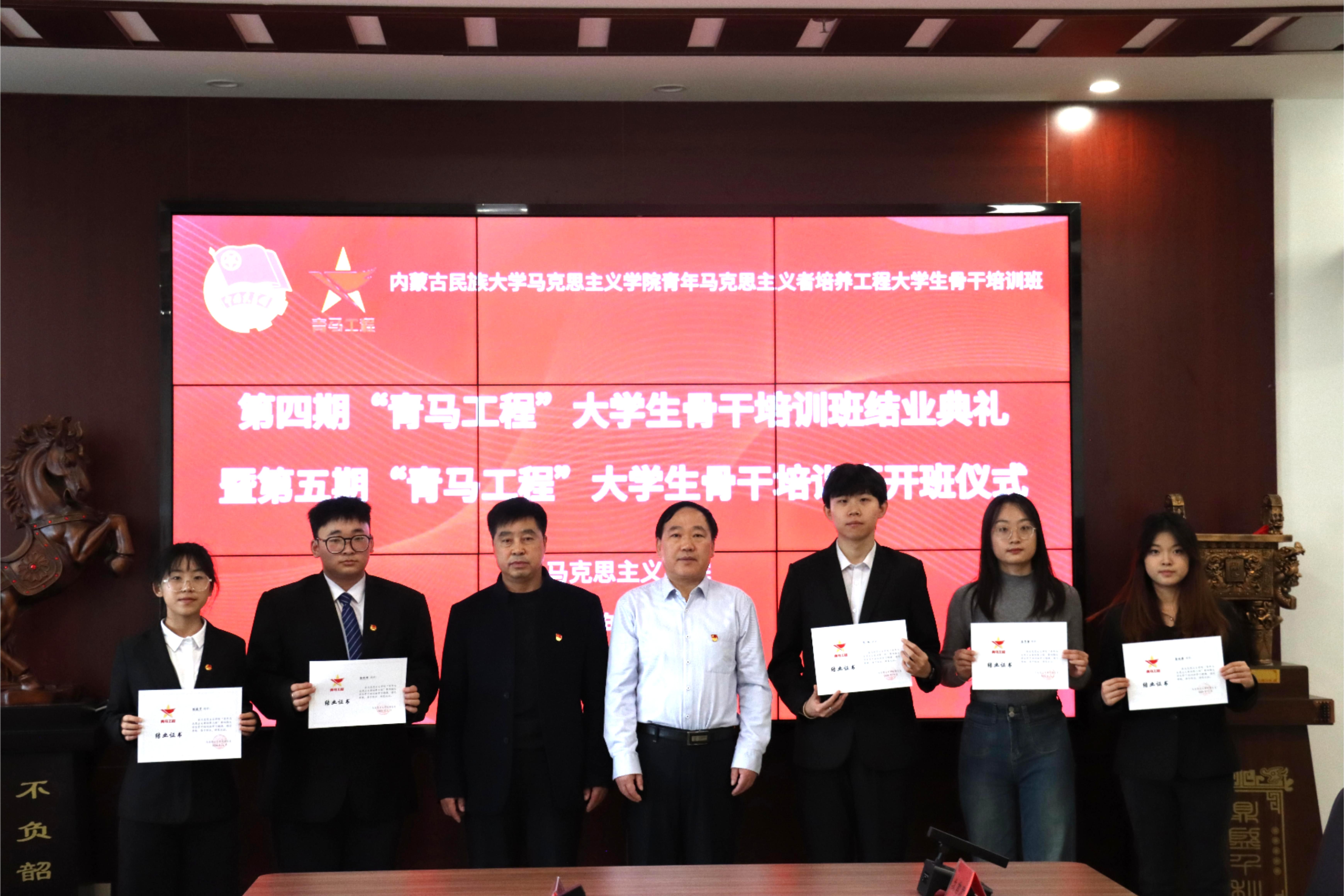 为深入学习贯彻习近平新时代中国特色社会主义思想,加强青年思想政治引领,培养能力素质突出的青年学生骨干,12月6日,马克思主义学院于西拉木伦校区知行楼A624开展第四期“青年马克思主义者培养工程”大学生骨干培训班结业典礼暨第五期大学生骨干培训班开班仪式。学院党委书记田宗会、中共通辽市委党校副校长姜占新、党委副书记山丹、团总支书记德力根胡、学工办主任范欣及学院“青年马克思主义者培养工程”第四期、第五期学员参加此次会议。