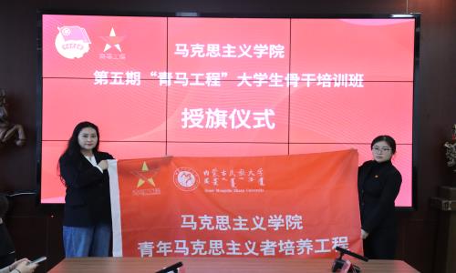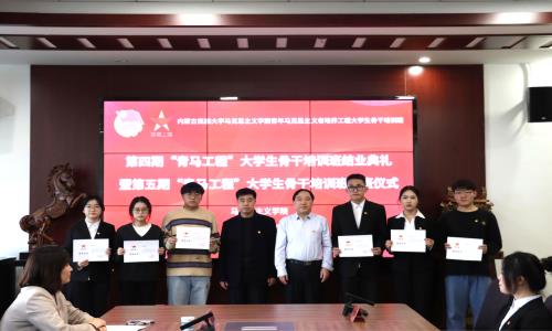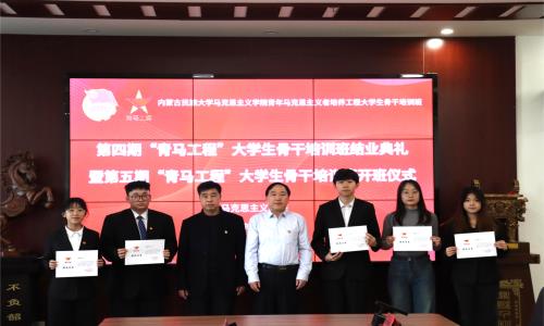 会上,党委书记田宗会、中共通辽市委党校副校长姜占新为第四期青马班学员代表颁发结业证书。团总支书记德力根胡宣读《马克思主义学院“青年马克思主义者工程”第五期大学生骨干培训班实施方案》。党委副书记山丹为第五期青马班授旗并强调青年一代的责任与担当,希望学员们能在时代的浪潮中奋勇前行。第四期青马班学员代表唐佳源表示,通过“青马工程”的学习,能更加深刻地认识自己作为青年一代的使命感。第五期青马班学员代表杨佳明表示将深入系统学习马克思主义世界观和方法论,努力在强国建设、民族复兴的实践中展现青春作为。党委书记田宗会在总结致辞中指出青年马克思主义者培养工程的重要价值和意义,并希望青马班学员以更加饱满的热情、更加坚定的信念,投身于这项伟大的事业中,努力成为新时代的优秀青年马克思主义者。