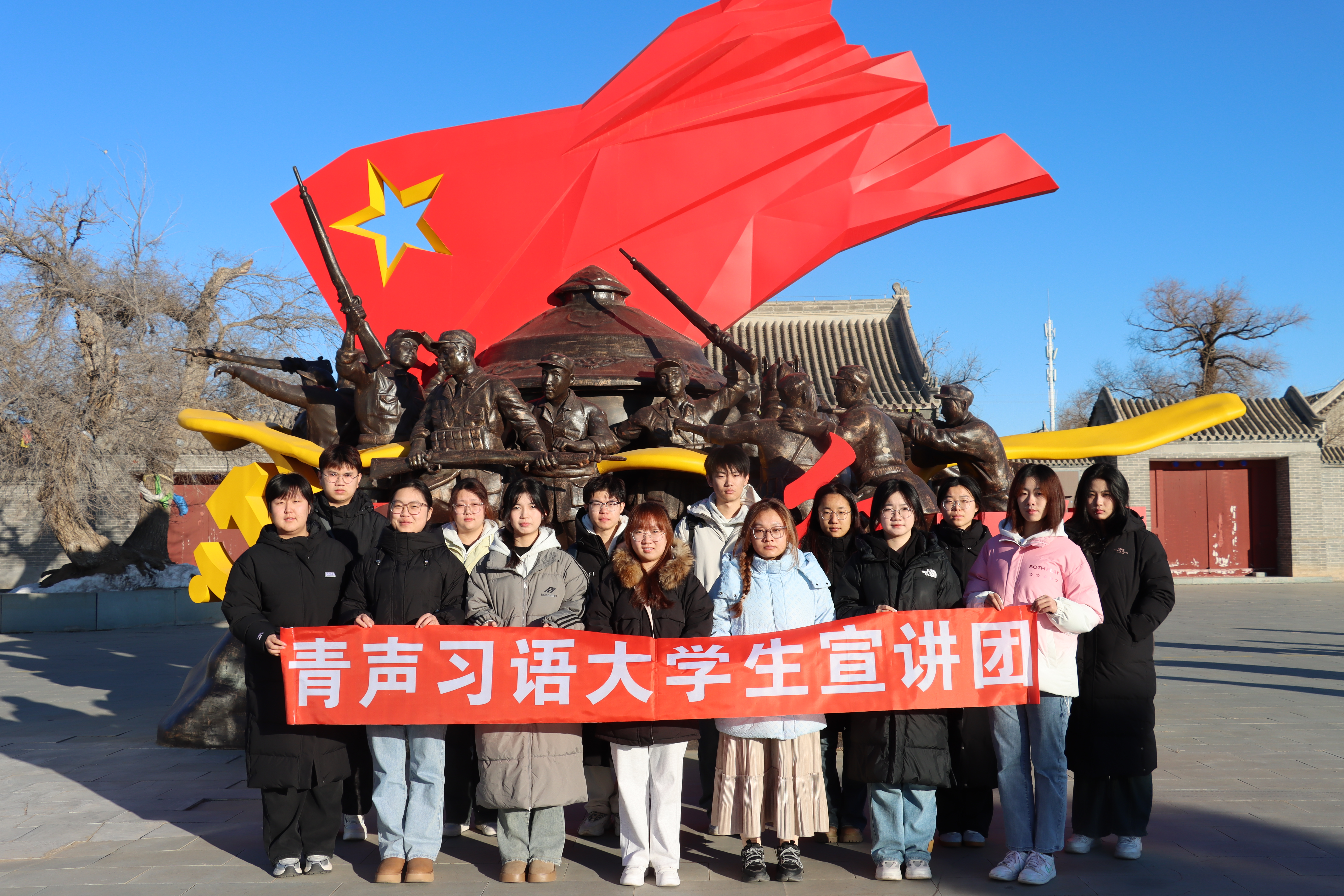 为落实立德树人根本任务,引导广大学生厚植爱国情怀、汲取奋进力量,12月8日,马克思主义学院青声习语大学生宣讲团前往科尔沁左翼中旗正北方红色研学基地开展红色研学实践活动,宣讲团14名成员参加。