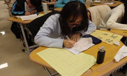 为纪念“一二·九”学生爱国运动,传承和弘扬伟大的爱国主义精神,12月9日,马克思主义学院于西拉木伦校区知行楼B512室举办“铭记一二九,笔墨书华章”硬、软笔书法比赛,共计58名同学参加。