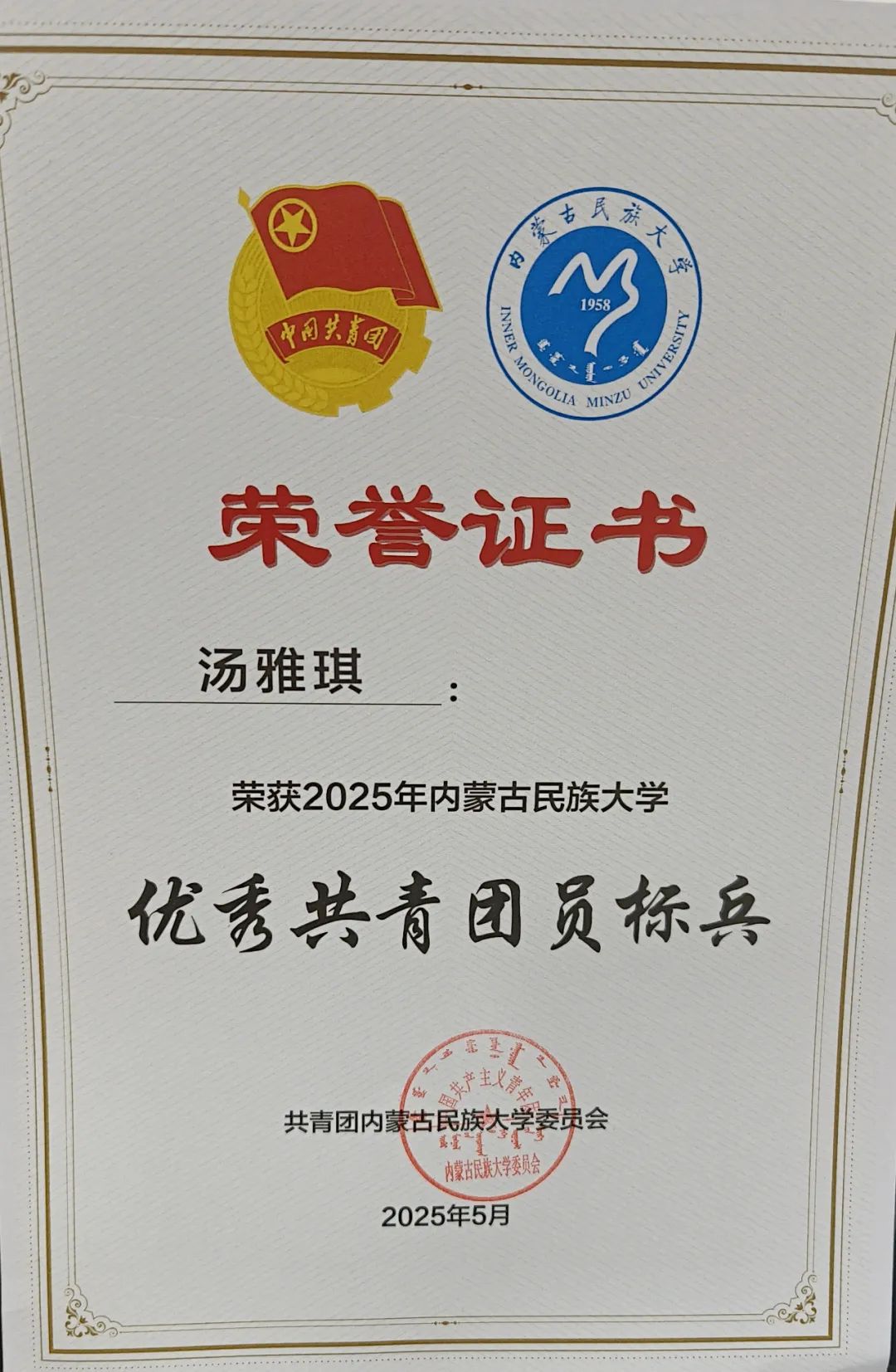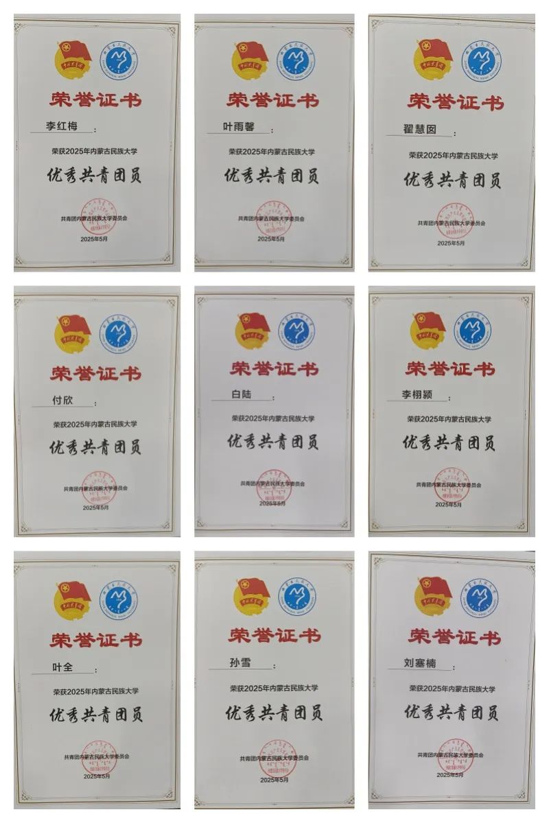 其中,马克思主义学院团总支荣获“红旗团总支”称号,2023级思想政治教育2班团支部荣获“红旗团支部”称号。团总支书记德力根胡荣获优秀共青团干部(教师)称号,刘塞楠、孙雪、叶全、李栩颍、白陆、付欣、翟慧囡、叶雨馨、李红梅同学荣获优秀共青团员称号,汤雅琪荣获优秀共青团员标兵称号,王泽鑫、徐琳荣、刘圆、赵兴华、顾冰冰、陶思涵同学荣获优秀共青团干部(学生)称号,唐佳源荣获优秀学生团干部标兵称号,寿建宇等57名同学荣获优秀青年志愿者称号,郭昕晔荣获社会服务新时代青年先锋称号。