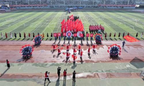 开幕式方阵入场环节,马克思主义学院学生身着红军服装,手持红扇,踏着铿锵有力的步伐亮相。旋律响起,他们手中的红扇随乐声起伏,如同熠熠生辉的红色火种,点亮团结拼搏的火焰,展现新时代青年的青春活力与无限潜能。