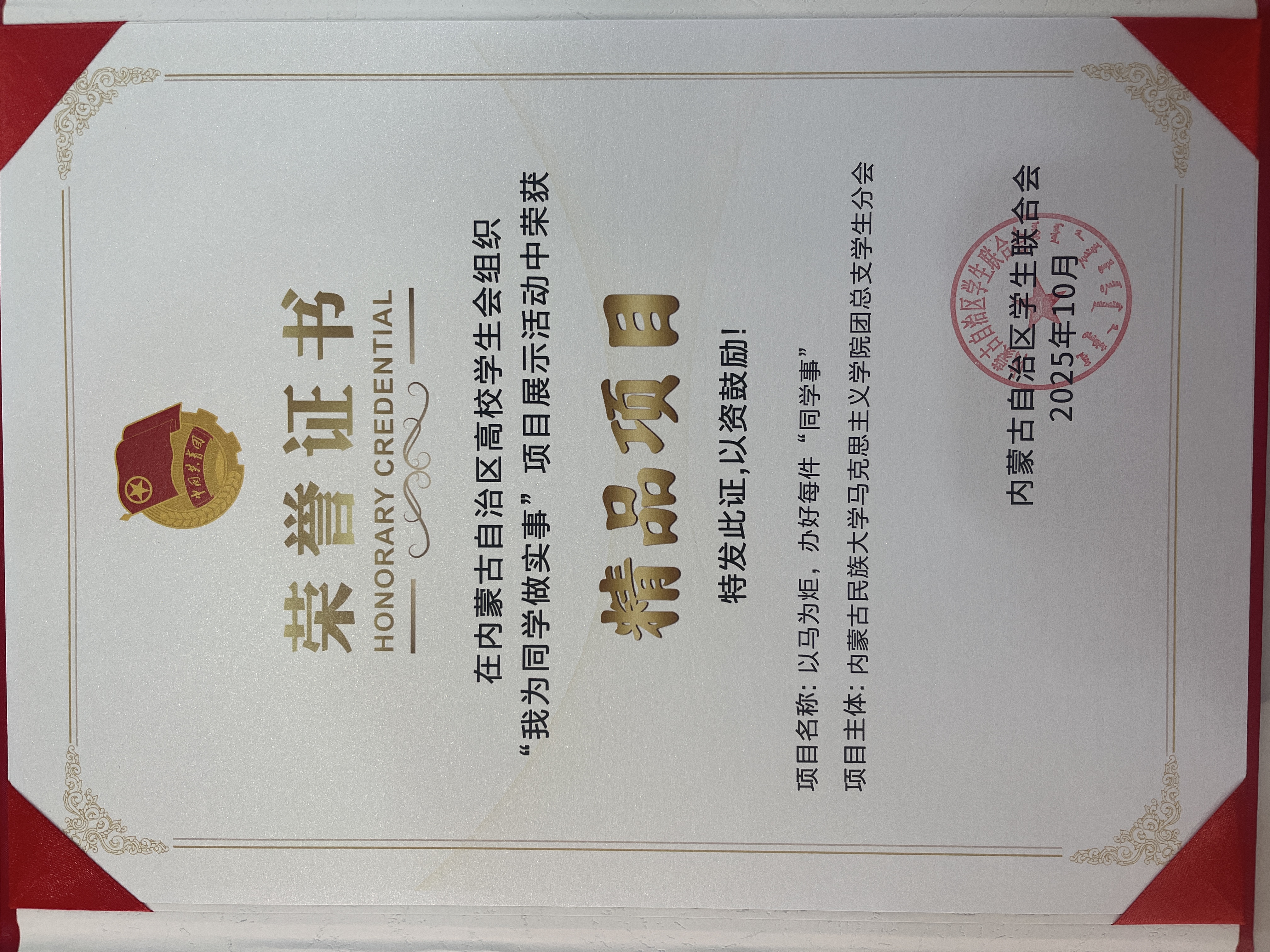 喜报 | 马克思主义学院团总支学生分会在内蒙古自治区高校学生会组织“我为同学做实事”项目展示交流活动中喜获佳绩
